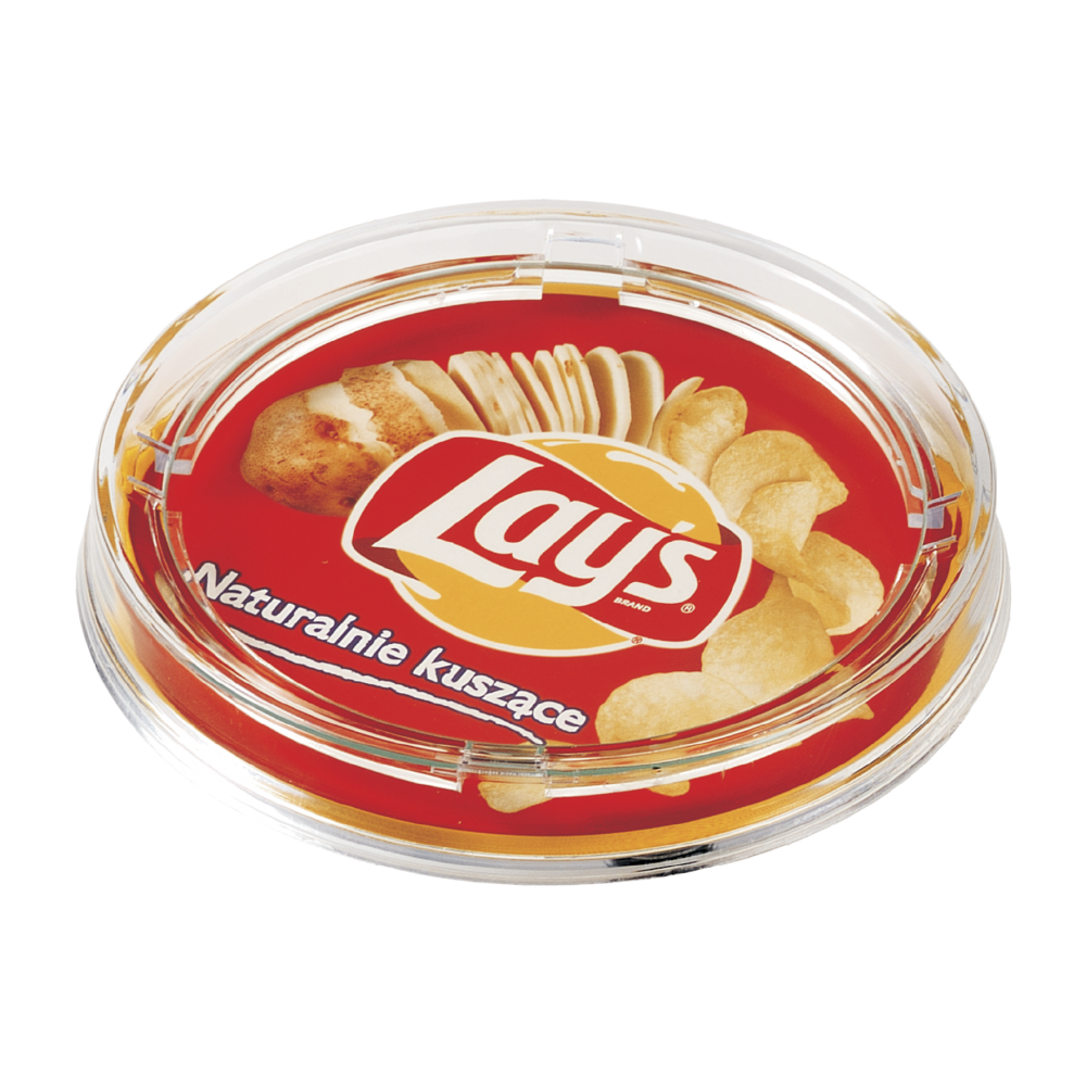 Model PG4 ist als eine runde Geldschale ausgeführt und besteht aus der unteren Kunststoff-Unterlage und der oberen Rahmenfassung, die ein gebogenes schlagfestes Glas darstellt. Die Elemente werden aneinender gefestigt und fixieren die Werbeetikette in der Geldschale. Dieses Model steht sicher auf dem Tresen, dank den auf der Unterlage angebrachten rutschfesten Füßen.