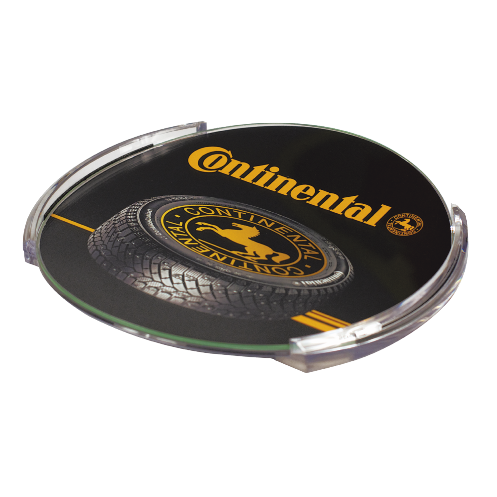 Le ramasse-monnaie verre-plastique PG1 pour recevoir de l'argent des acheteurs et rendre la monnaie. Il est fait sous forme d'un plateau rond et se compose d'une base inférieure en plastique et d'une plaque supérieure faite du verre creusé antichoc. Les éléments se sont clampés et fixent l'étiquette publicitaire à l'intérieur du ramasse-monnaie. Le ramasse-monnaie est stable sur le comptoir grâce aux patins antidérapants sur la base.