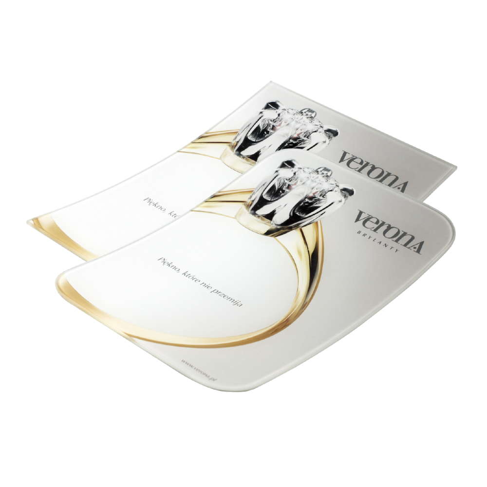 GLC Sticker 150x210 - le ramasse-monnaie rectangulaire en verre. Les modèles de série GLC sont faits en verre solide creusé. Une étiquette publicitaire est collée à la partie arrière du ramasse-monnaie et est ainsi sécurisée contre le grattage et la détérioration. Les angles du ramasse-monnaie peuvent être adoucis. La stabilité sur le comptoir est assurée par 4 patins antidérapants.